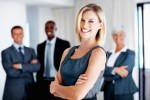 Portrait of beautiful business woman with team in background